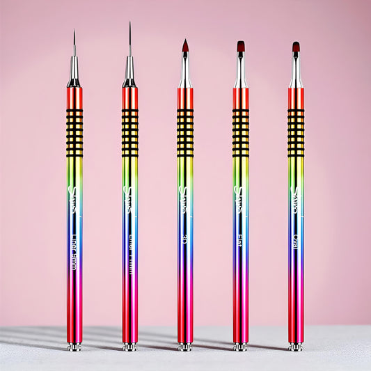 Kit di 5 Pennelli Professionali Per Nail Design e Ricostruzione Unghie